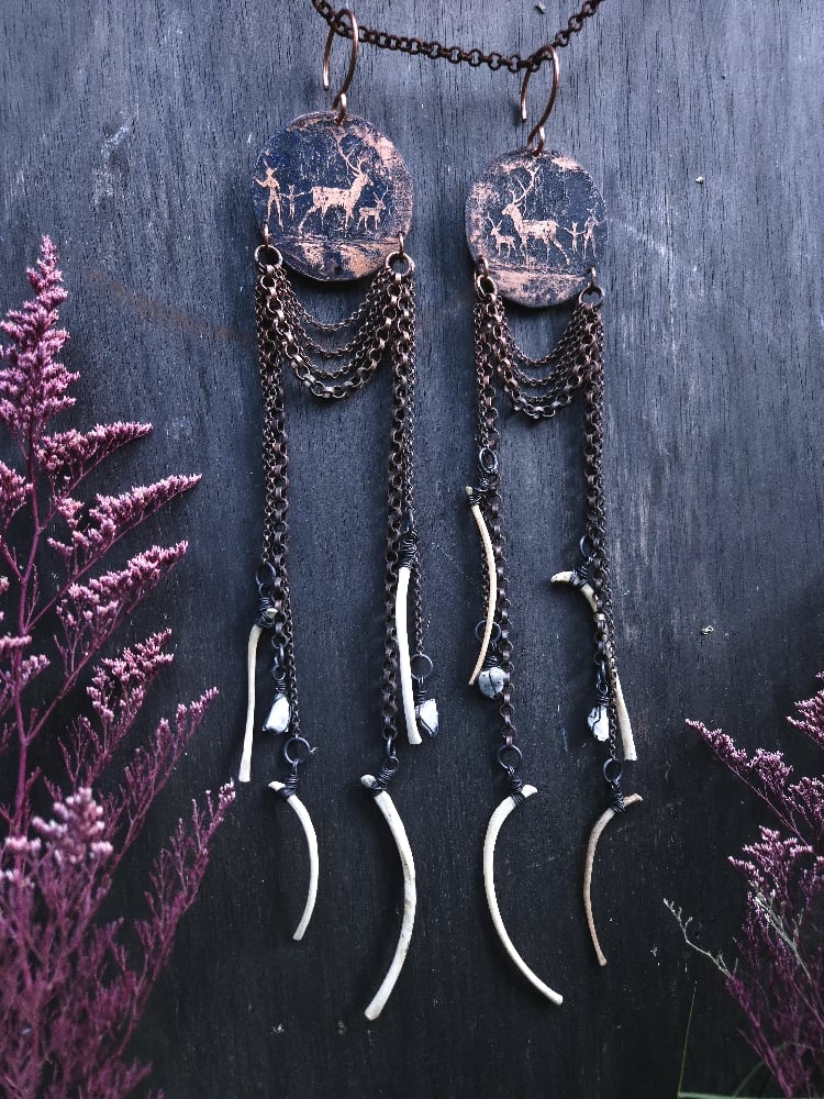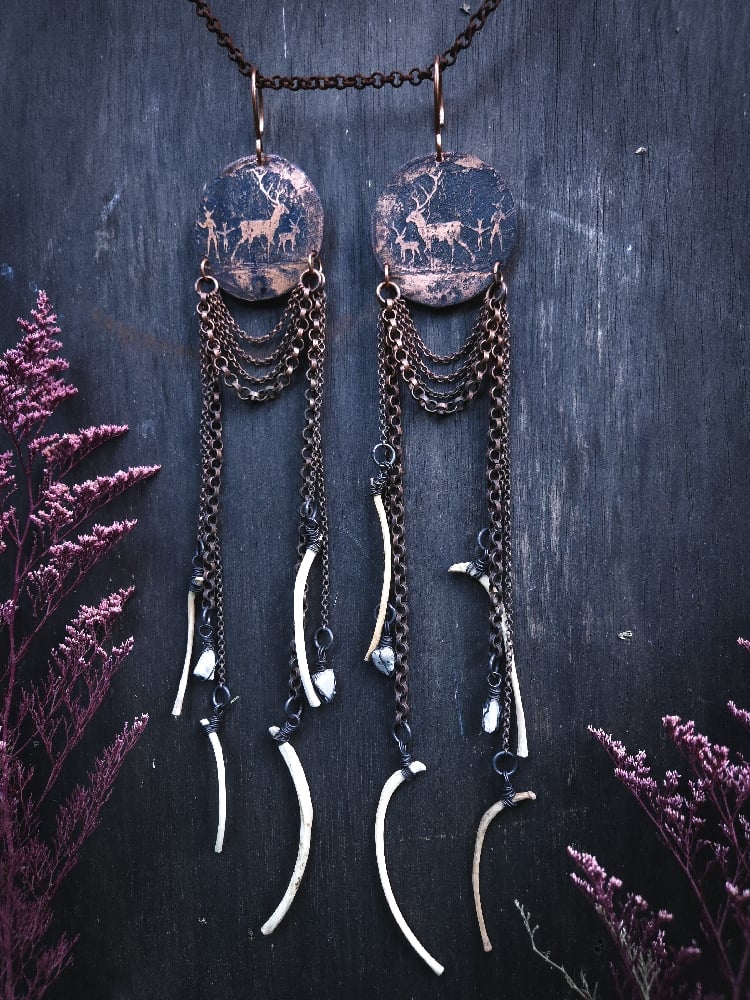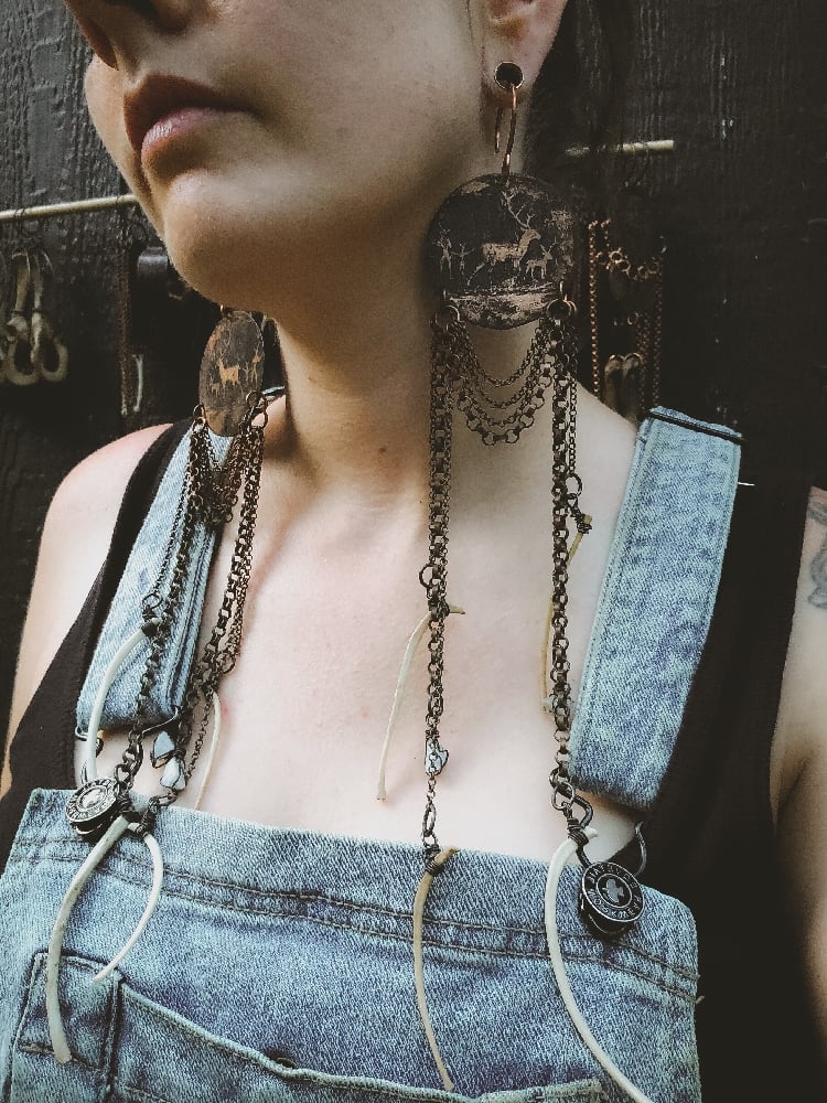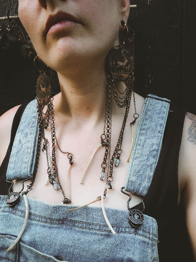 copper, copper-iron alloy chain and scavenged assorted rib bone hangers