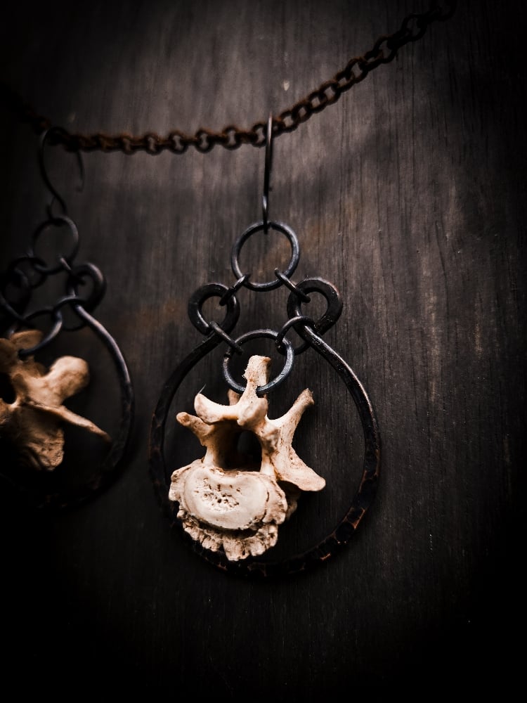 copper and scavenged raccoon vertebrae with (cancerous?) growth