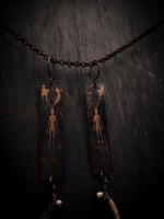 copper and scavenged raccoon rib bone earrings