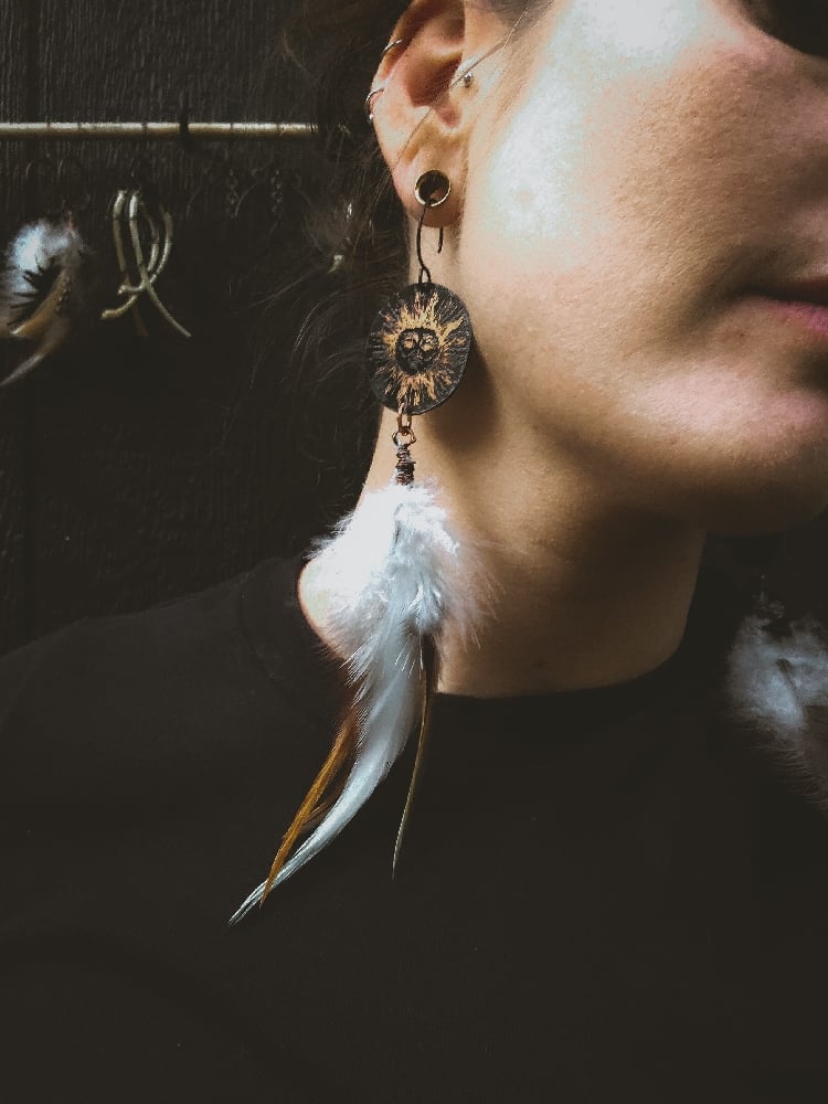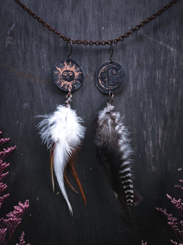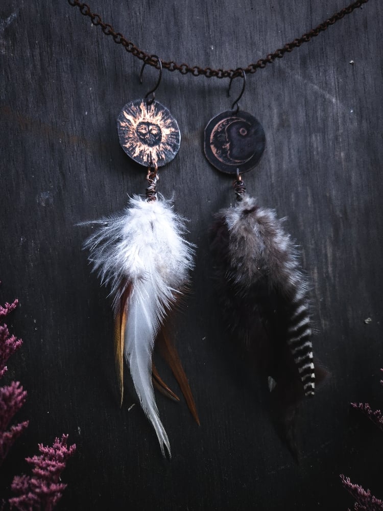 copper and scavenged chicken/rooster feather earrings