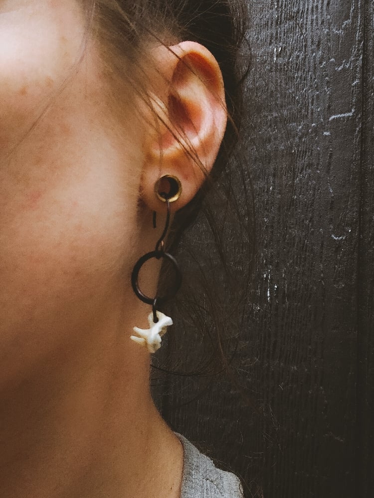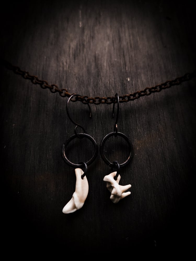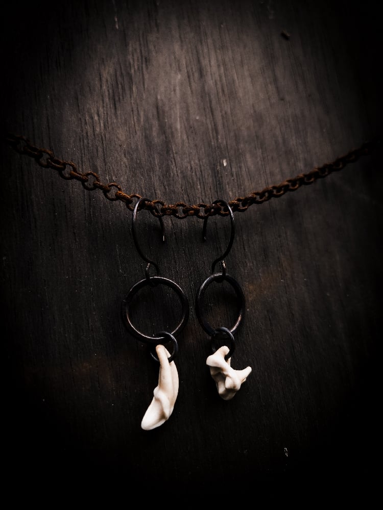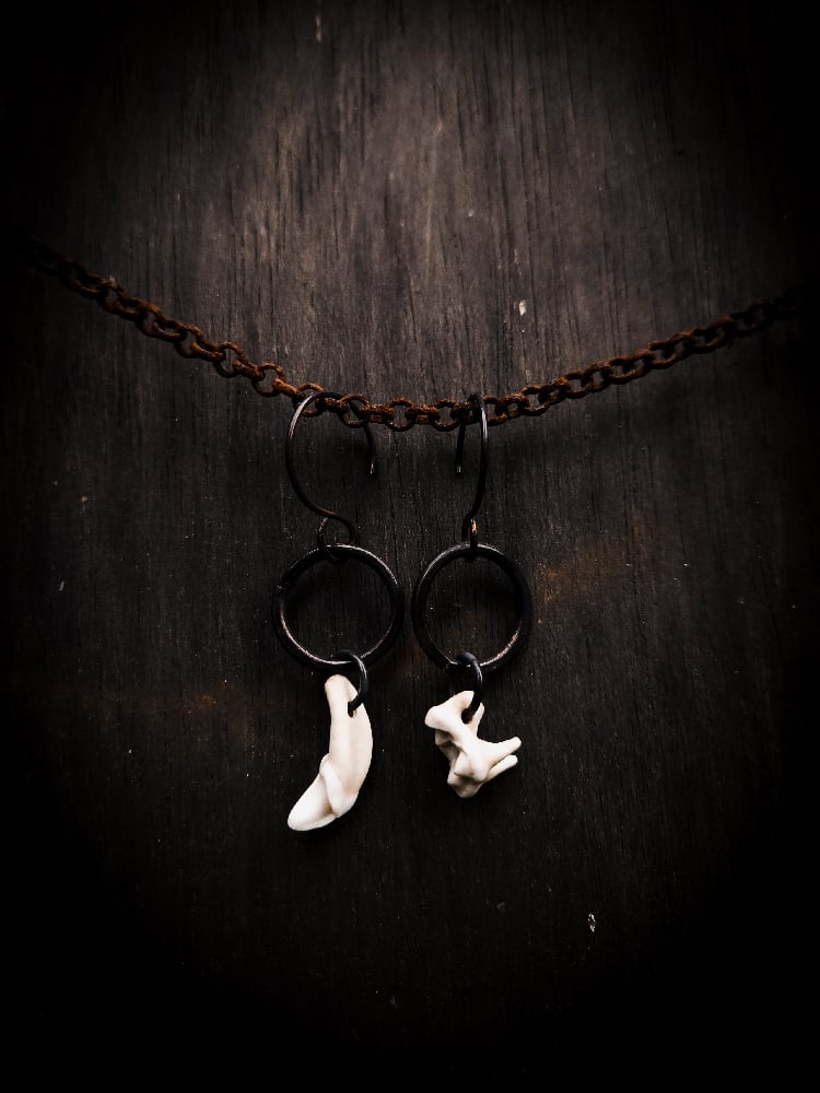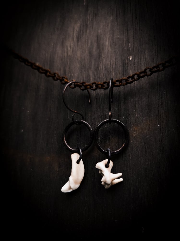 copper and scavenged coyote tooth earrings
